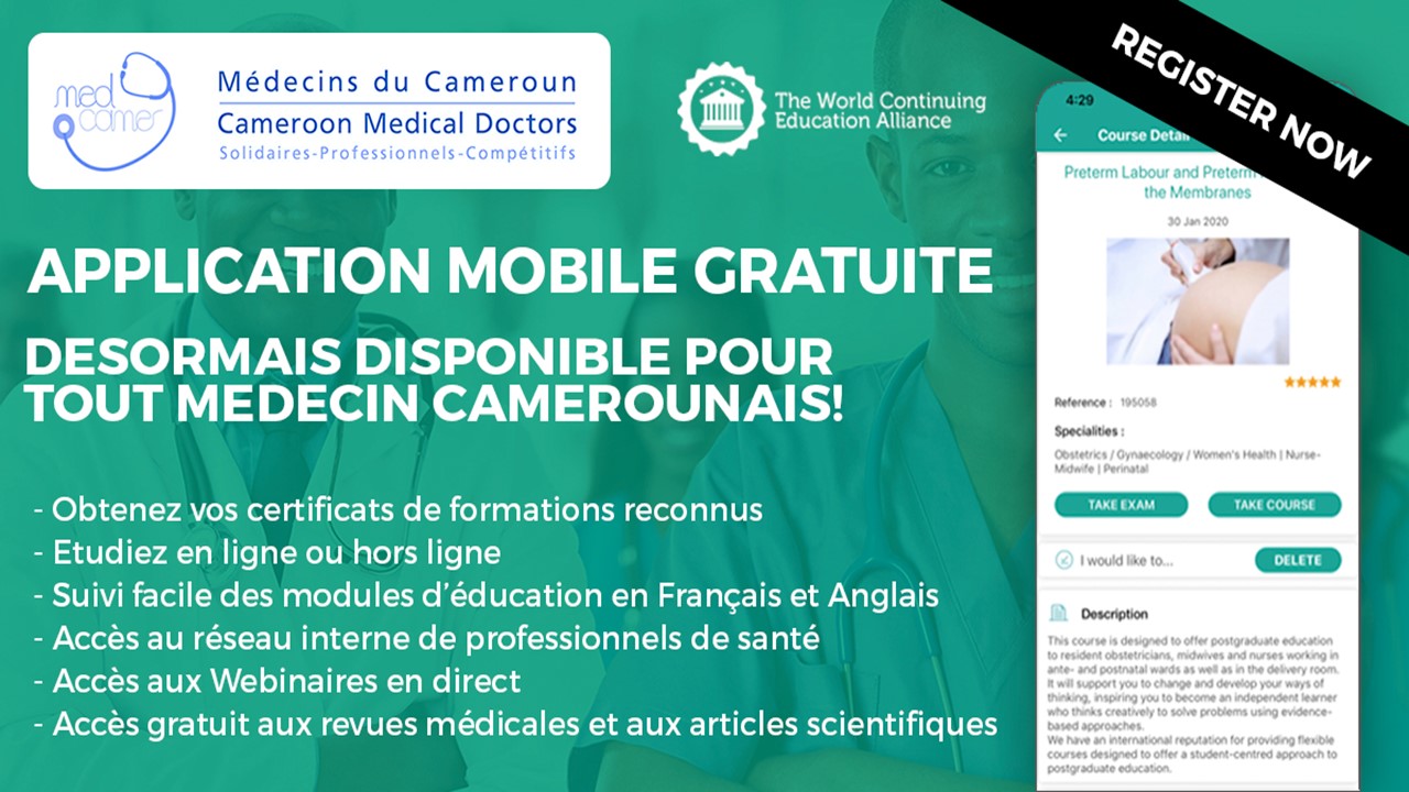 The Cameroon Medical Doctors Association (MEDCAMER) in collaboration with the WCEA (World Continuing Education Alliance), partner of the World Medical Association is happy to announce the launch of its new and FREE Mobile App and Online Platform for all Cameroonian doctors and healthworkers.